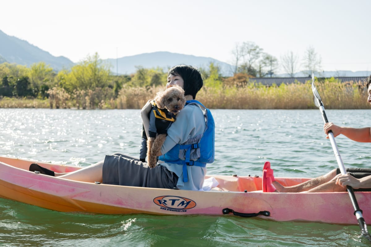在「公用三溫暖」眺望琵琶湖美景。使用時,需穿著自備泳衣或現場租用三溫暖斗篷。