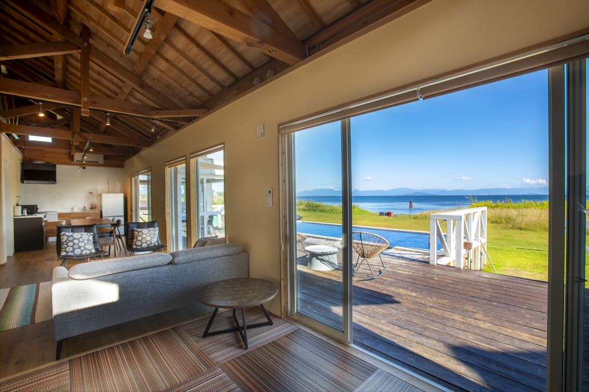 您也可以從房舍內的沙灘直接在眼前的琵琶湖沐浴。