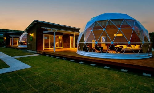 在豪華野營區域,有3棟圓形的圓頂帳篷,還有7棟原創的草原狩獵帳篷,共計10棟。