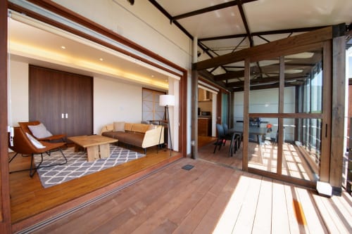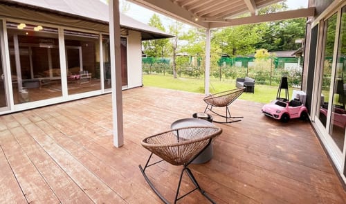 用餐區域有屋頂和牆壁,無論颳風下雨,還是寒冷的冬季,都能舒適地享受BBQ的樂趣。 春夏季節,打開門,可以一邊吹拂微風,一邊優雅地享受美食,好不愜意!