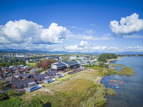 和愛犬出遊,推薦入住【DOG GLAMPIMG 滋賀高島】(此棟也作為【GLAMP DOME 滋賀高島】的管理棟使用)。所有房型設有專屬遛狗區,並提供各式狗狗用品,另外還有高保濕效果的天然溫泉和私人湯屋可以盡情享受沐浴的療癒時光。