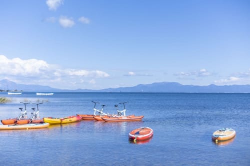 一邊享受「公共三溫暖」,一邊眺望琵琶湖的美景。